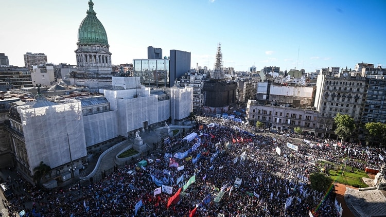 Organizaciones sociales y políticas marchamos por el centro porteño en protesta por la visita al país de una misión del Fondo Monetario Internacional (FMI) y en apoyo a la postura del gobierno nacional.